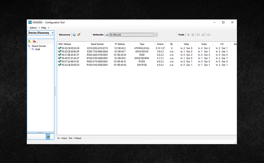 IONConfigTool a été développé pour découvrir et configurer facilement les appareils IONODES sur votre réseau lors de l’installation initiale, la maintenance quotidienne ou à des fins d’assistance.