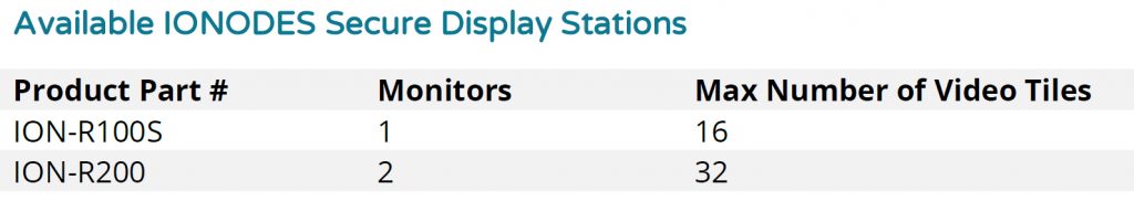 IONODES Secure Display Stations have been designed to use live video monitoring to promote more secure environments.  They can display live video on a variety of digital monitors without the cost, complexity and security risk of a client workstation.  This is ideal in public areas and in remote sites or facilities with few or no trained security staff.  The ION-R100S, ION-R200 and ION-R300 Secure Display Stations can display up to 32 IP video streams, on one, two or three 4K monitors, and typically operate independently of any video management system (VMS) or NVR.
