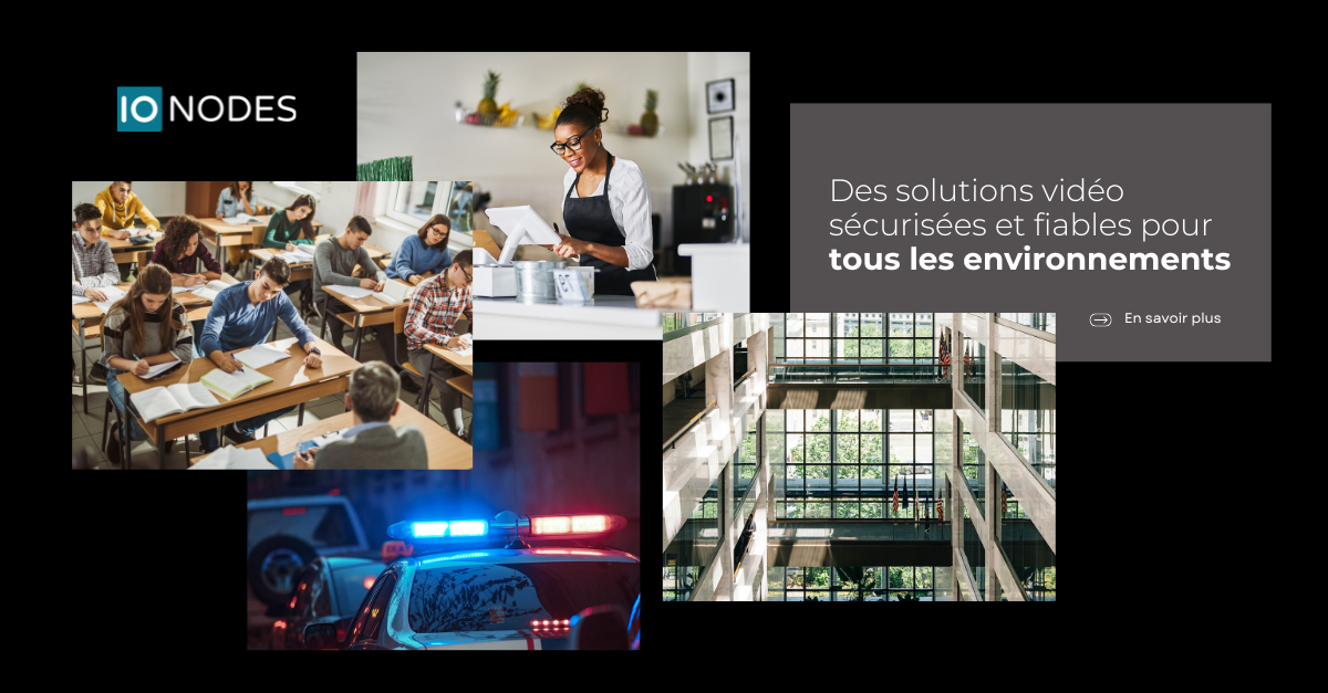 Basés sur une architecture de plateforme ouverte, nos produits s’intègrent aux principaux systèmes de gestion vidéo (VMS) et plateformes d’analyse, permettant aux organisations d’adapter leur écosystème vidéo à leurs besoins précis. Qu’il s’agisse d’une chaîne de magasins cherchant à réduire ses pertes ou d’un organisme de sécurité publique souhaitant améliorer ses interventions en temps réel, IONODES offre fiabilité, performance et sécurité dans de nombreux secteurs.