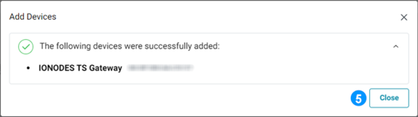 5. A confirmation dialog will indicate that the PERCEPT Gateway have been successfully added. You may Close this dialog.